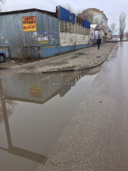 В Керчи в районе автовокзала постоянно собирается огромная лужа, которую люди обходят по проезжей части. Об этом  Керчь.ФМ сообщили постоянные читатели
