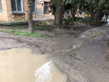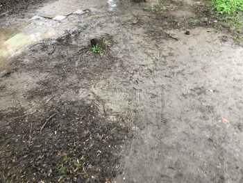 Люди говорят, что въезд во двор здесь абсолютно всегда в воде.
