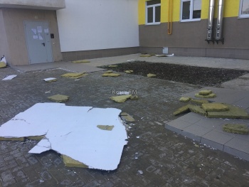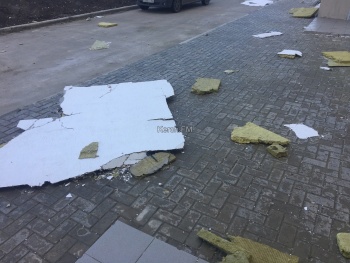 Прошло чуть больше месяца, как крымские власти торжественно вручали ключи от квартир депортированным гражданам в Керчи. Сегодня, корреспондент Керчь.ФМ обнаружил, что сразу с трех этажей слетел утеплитель с фасада дома.