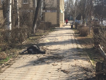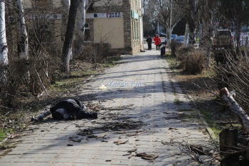 Журналист Керчь.ФМ обратился к медикам, с просьбой накрыть тело, поскольку человек лежит прямо на тротуаре и мимо проходят люди.