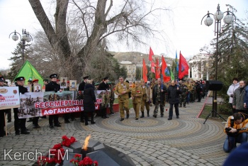 В Керчи 15 февраля прошел митинг и возложение цветов к памятному знаку воинам-интернационалистам в сквере Афганцев - передает Керчь.ФМ.