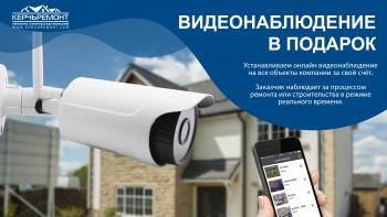 С 2020-го года на всех объектах компании мы устанавливаем онлайн видеонаблюдение стоимостью 34 тысячи за свой счёт. Благодаря этому заказчик, менеджер и прораб компании могут следить за процессом ремонта или строительства через в телефон в режиме реального времени.