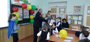 А вот учащиеся школы № 5 г. Керчи удивили жюри своей встречей. Отряд юных инспекторов дорожного движения, одетых в полицейскую форму, встретил судейскую комиссию прямо у входа. Юные инспектора провели у ребят младших классов уроки безопасности дорожного движения. С свою очередь, школьники порадовали жюри хорошими знаниями Правил дорожного движения.