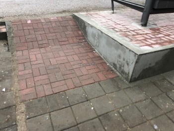 Так, здесь уложили новую плитку, залили подпорную стенку, ступеньку и оборудовали два пандуса.