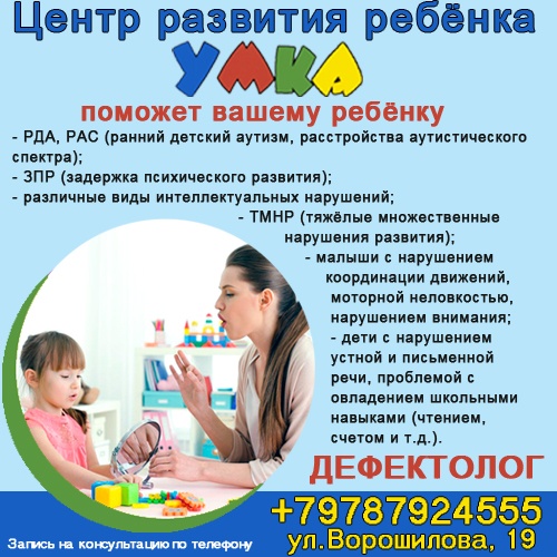 Центр развития ребёнка «Умка» приглашает на занятия детей с особыми образовательными потребностями: