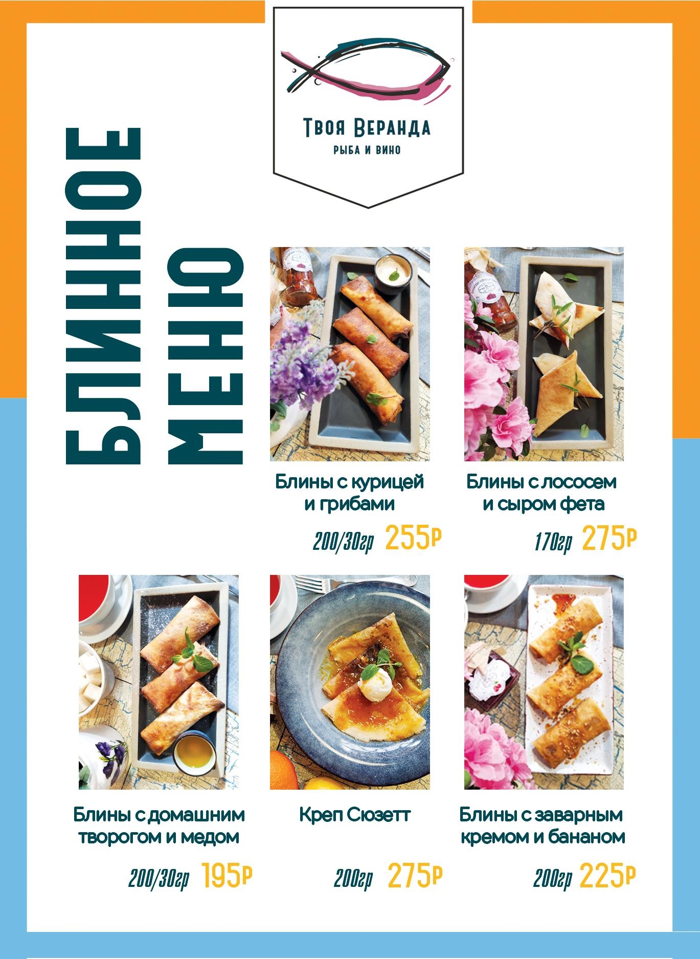 С 24 февраля по 01 марта Твоя Веранда. Рыба и Вино, INKI BBQ&BAR, городские пиццерии J-Pizza каждый день готовят для тебя тонкие и нежные, ароматные и румяные, блины с разными начинками!