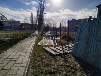 В Керчи около недостроенного садика на Ворошилова, на месте бывшего стадиона школы №12, снова упал забор. Он не выдержал сильных порывов ветра, - передает Керчь.ФМ.
