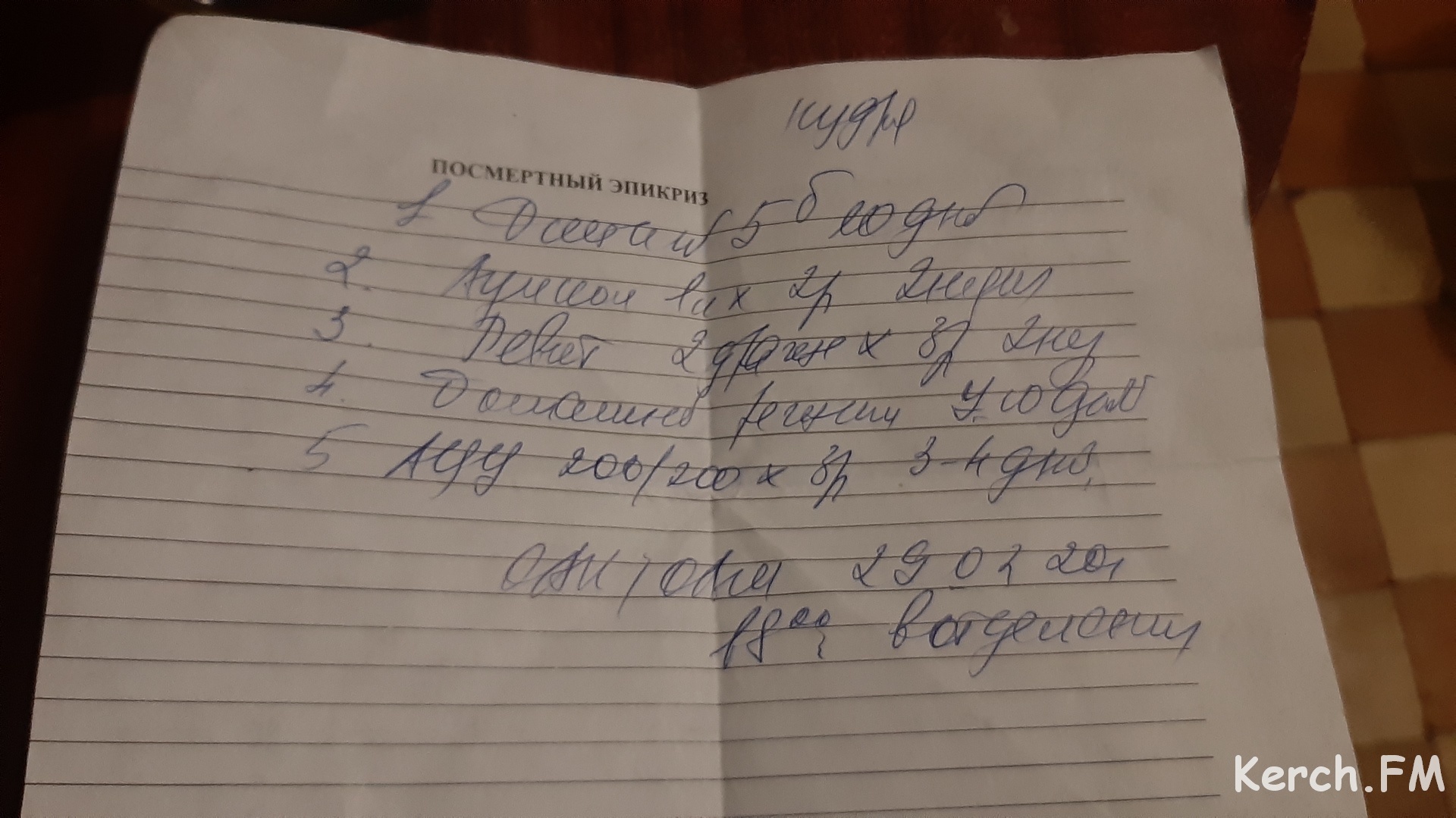 В Керчи назначение ребенку выписали на посмертном эпикризе. Фотографию плана лечения ребенка прислали в редакцию Керчь.ФМ родственники.