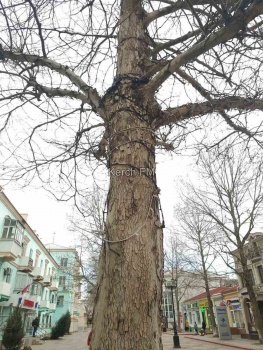В редакцию  Керчь.ФМ наша постоянная читательница прислала фотографии деревьев, обмотанных гирляндами. Керчанка считает, что это наносит им вред, поскольку дерево растет, а гирлянда начинает врезаться в ствол.