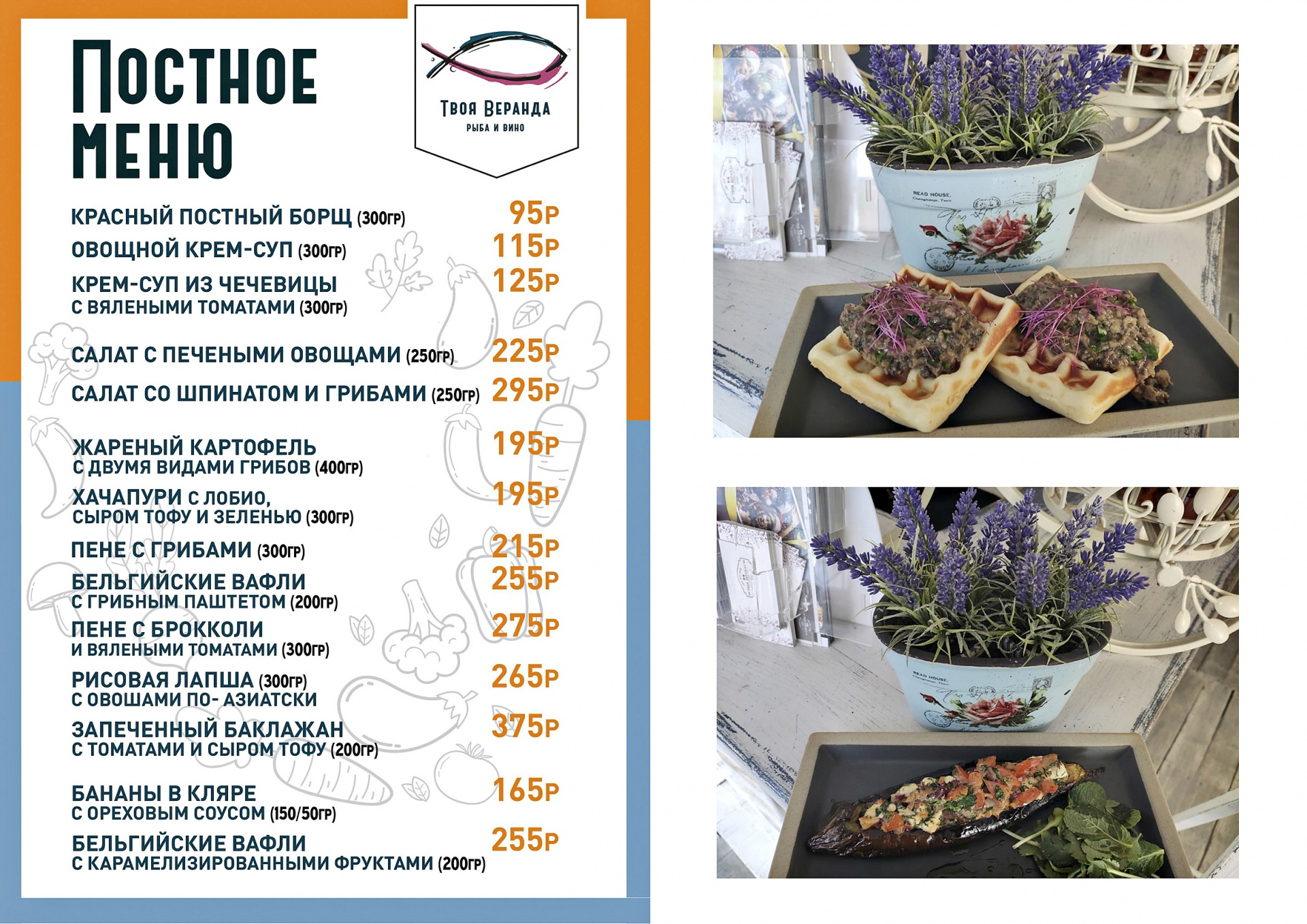 Твоя Веранда. Рыба и Вино в своем постном меню экспериментирует, смешивая вкус и пользу, и в течение Великого поста приготовит для Тебя: