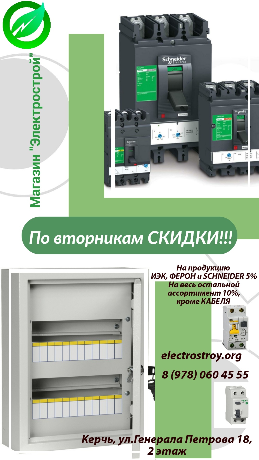 Какую скидку можно получить в магазине «Электрострой» во вторник?