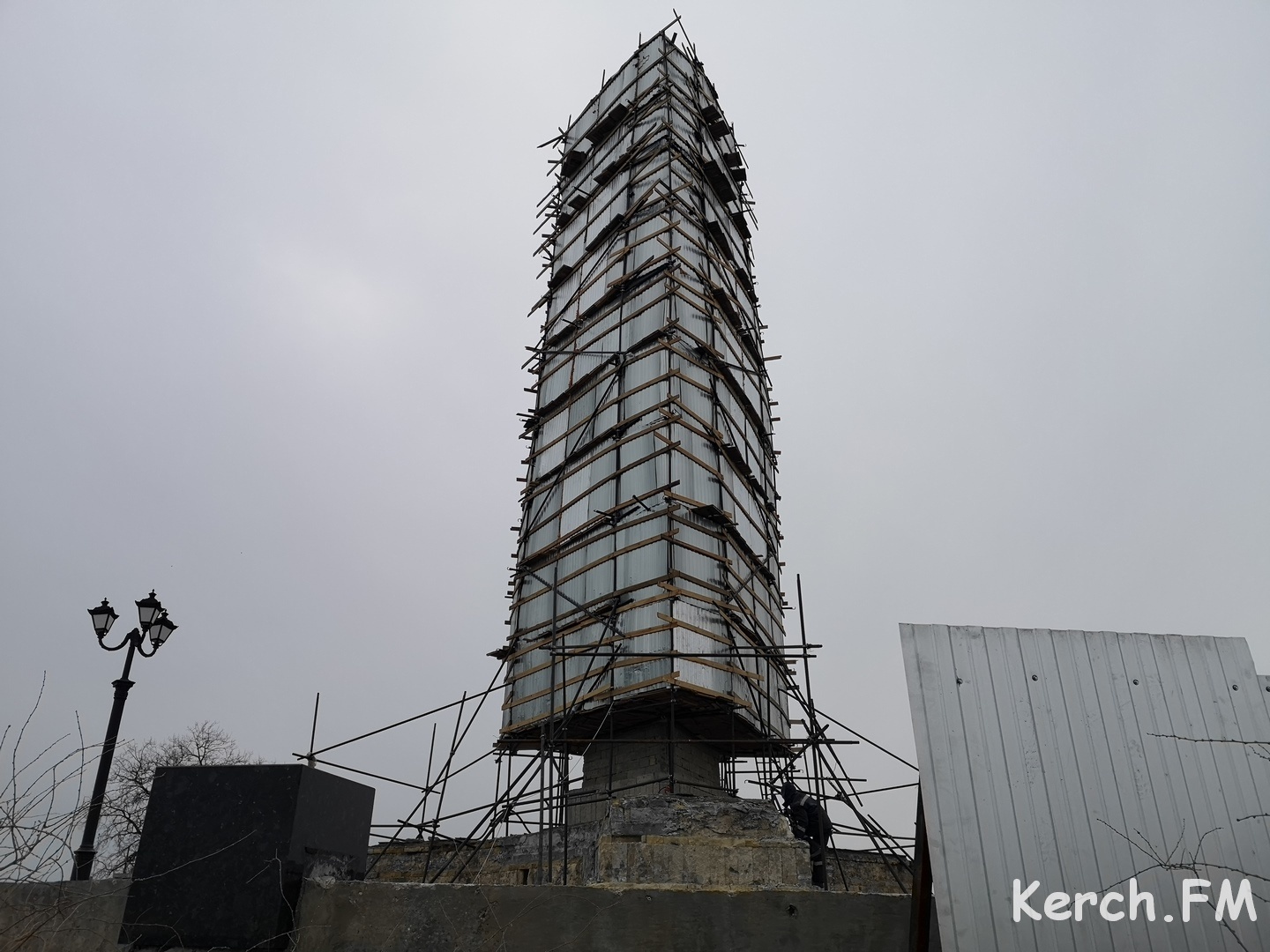 До окончания ремонта Обелиска Славы в Керчи осталось немногим больше месяца. Судя по паспорту объекта реконструкции, срок окончания работ апрель 2020 года. Обелиск до сих пор обшит и увидеть, как проходит процесс реставрации и на какой он стадии, невозможно, - передает Керчь.ФМ.