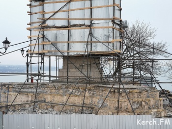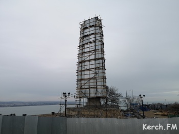 Постамент обелиска без облицовочной плитки, также плитки нет и на площади перед постаментом. Успеют или нет реставраторы АО «Баварский дом» - неизвестно, но до 75 годовщины, когда на Митридат поднимутся сотни керчан, осталось немногим больше 2 месяцев, или, если быть точным, 69 дней.