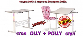 С 1 марта по 30 апреля 2020 г. специальные цены, скидки до 10% на регулируемый по высоте стол OLLY и стул POLLY в магазине kerchmebel . ru