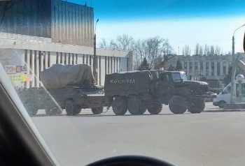 В Керчи 6 марта, у кольца на «Институте» ехала военная техника. Об этом Керчь.ФМ сообщили постоянные читатели. Керчане отметили, что тянули, предположительно, БТР, который был накрыт.