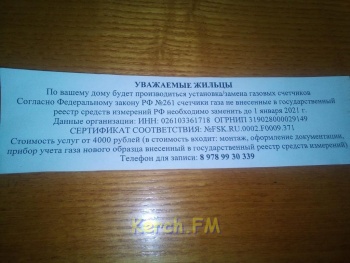 За комментариями редакция обратилась в керченский филиал «Крымгазсетей». Оказалось, что некоторые соседи заранее уведомили горгаз в том, что будут менять счетчик, и специалисты горгаза составили акт о снятии пломбы.