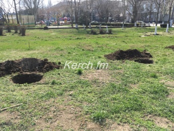 Новости » Общество: В сквере на морвокзале в Керчи выкопали лунки для деревьев