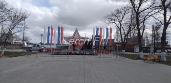 В Керчи 16 марта на сцене, которую поставили на морвокзале, установили звезду, - передает Керчь.ФМ. Также сцену украсили флагами.