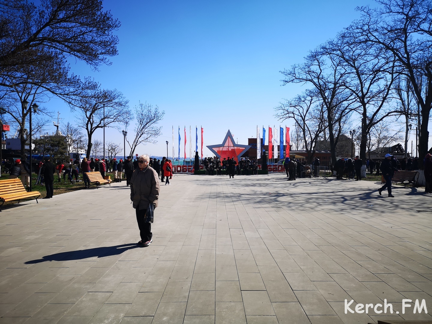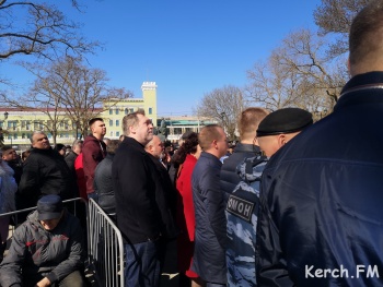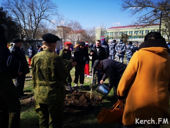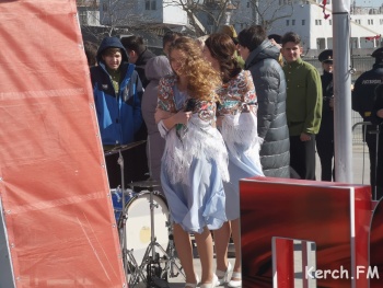 Перед собравшимися выступил студенческий клуб Керченского морского технологического университета. В качестве приглашенного гостя слова благодарности российскому народу выразил глава администрации Макеевки Донецкой области Сергей Голощапов. Вместе с гостями школьники, студенты и керчане высадили в парке перед морвокзалом деревья.