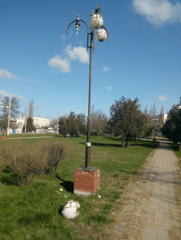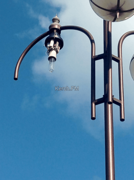 Сильный ветер снес и разбил плафон на фонарном столбе в Керчи