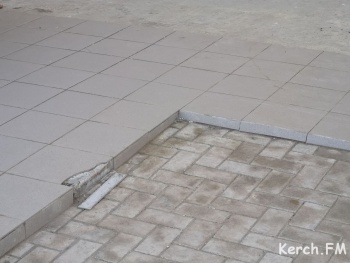 Отколовшаяся плитка с острыми краями перед подъездом так и осталась лежать, на подходе к разрушению другая - это или качество плитки и руки не из того места при укладке.