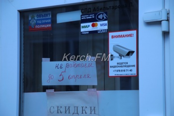 В Керчи c 28 марта разрешено работать только продовольственным магазинам и магазинам, с товарами первой необходимости (мыло, салфетки, прокладки, подгузники и т.д.). Остальные же магазины должны приостановить свою работу до 5 апреля. Но лишь малая часть предпринимателей это сделала, - передает Керчь.ФМ.