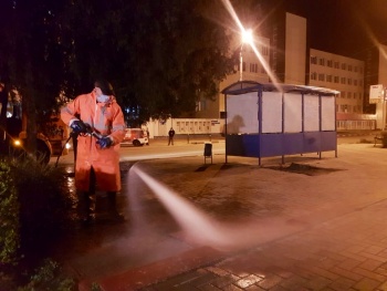 Ночью специалисты МУП «ЖилсервисКерчь» приступили к санитарной обработке остановок общественного транспорта, а также дорог общего пользования. В рамках обработки в воду добавляется средство для дезинфекции. Об этом в соцсети сообщил глава администрации Керчи Сергей Бороздин, - передает Керчь.ФМ.