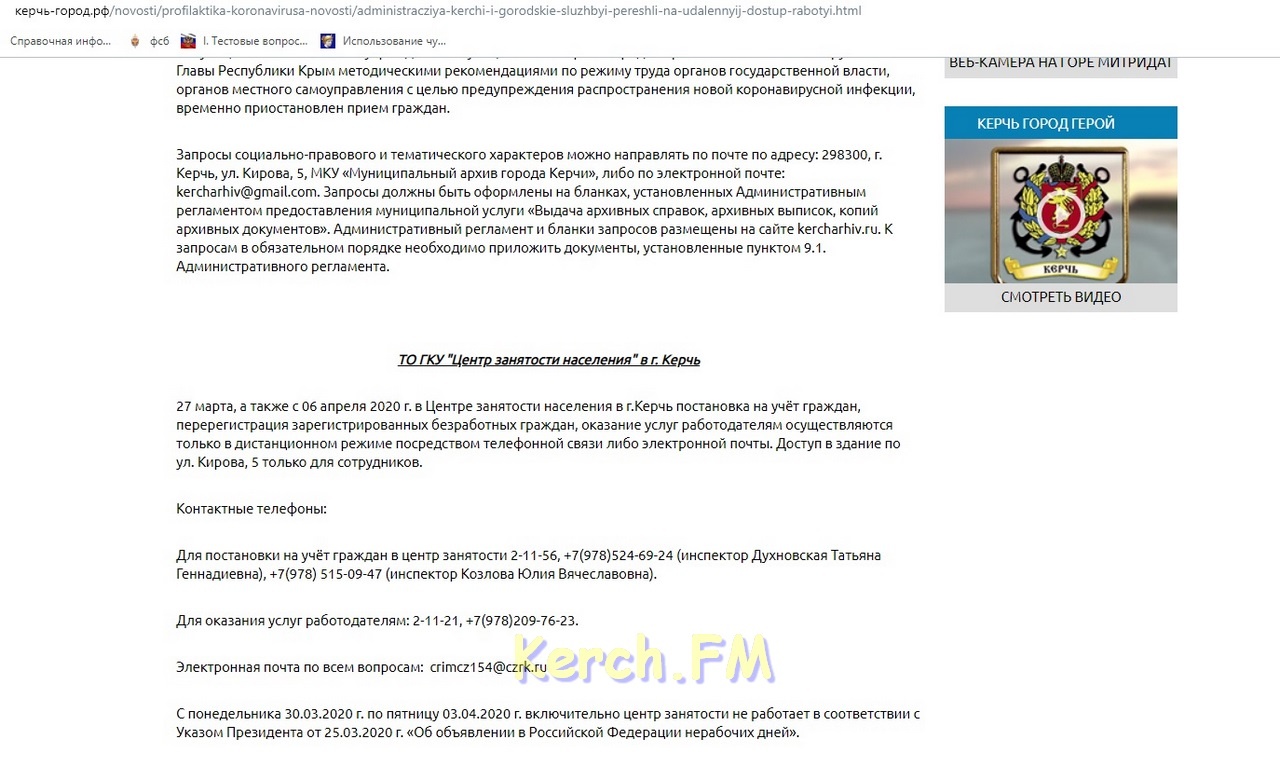 В редакцию сразу после заседания штаба позвонила керчанка, которая сообщила, что встать на учет в ЦЗ Керчи невозможно, так как личного приема нет, на телефоны, указанные в объявлении администрации, никто не отвечает.