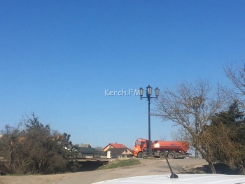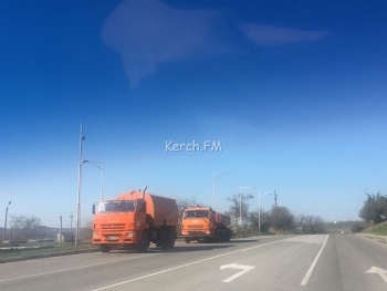 В редакцию Керчь.ФМ постоянная читательница прислала фото техники, которая 2 апреля чистила и мыла обочины дорог на выезде из Керчи. Машины двигались медленно и с помощью щеток и воды чистили обочины.