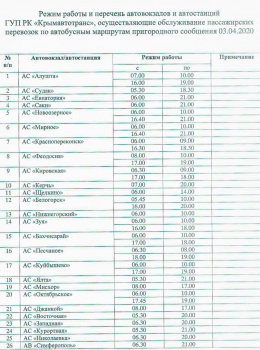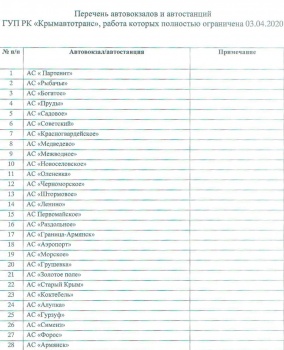С 3 апреля работа 28 крымских автостанций приостановлена в связи с полным ограничением пассажирских перевозок по автобусным маршрутам междугороднего сообщения. Об этом сообщает «Крымавтотранс», - передает Керчь.ФМ.