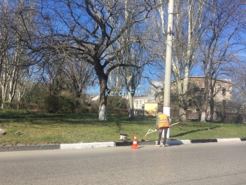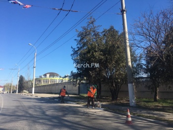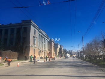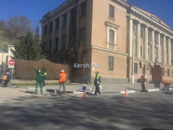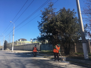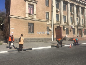 В Керчи 6 апреля на улице Свердлова люди в жилетах красили бордюры в бело-черные, - передает Керчь.ФМ.