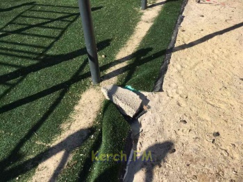 Современный спортивный комплекс, установленный 3 месяца назад по улице Генерала Петрова, 20, «пошел волнами». Подложка без надлежащего укрепления поднялась и начала рваться. Фотографии в редакцию Керчь.ФМ прислали постоянные читатели.