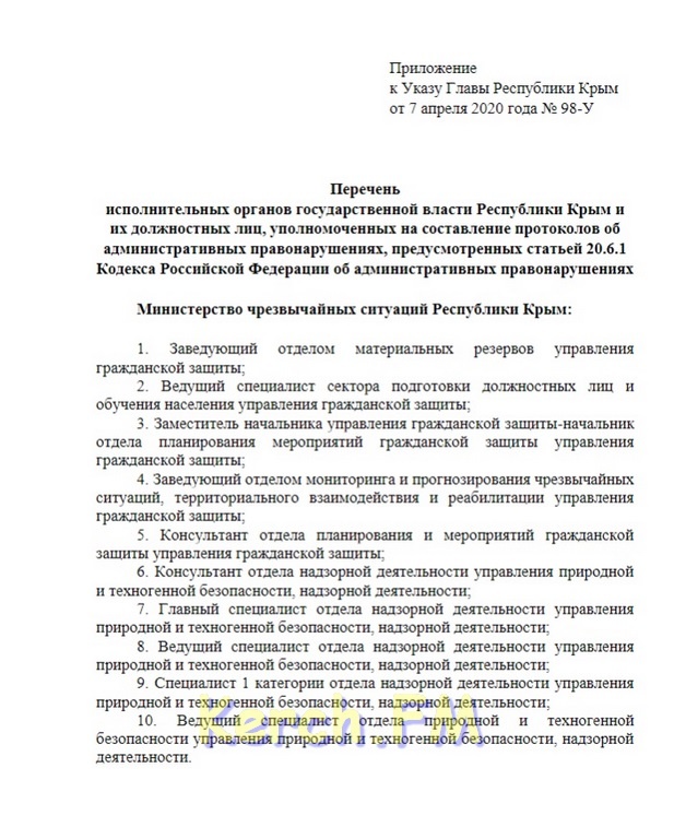 Указом Главы Крыма 7 апреля определен перечень должностных лиц, уполномоченных составлять протоколы по ст 20.6.1 КоАП РФ.