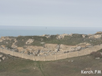 За забором находится объект культурного наследия городище Полянка III век до н. э. С 80-х годов 20 века там также находится профилакторий бывшего военного совхоза "Азовский", который (здания) находится в частной собственности. Забор этот возвел хозяин здания в 2008 году одновременно огородил территорию раскопок. Сейчас он раскопки охраняет, а летом принимает восточно-крымскую археологическую экспедицию. Молодежь приезжает на раскопки, одновременно отдыхают, купаются, устраивают дискотеки. Очень гордятся, что их охраняют, территория огорожена и есть своя вертолетная площадка, вот только с транспортом туго. За забор попасть не удалось - забор высоки и глухой до самого моря, на воротах замки.