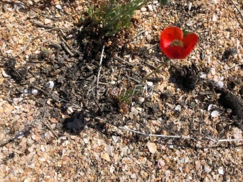 А вот кто-то перерыл огромную траншею вдоль всех озер. Видимо работники заповедника. И вместе с землей перерыты и тюльпанчики - они валяются выкорчеванные прямо на земле вдоль дороги.