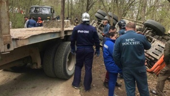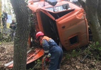 По прибытии на место происшествия стало известно, что во время движения, водитель допустил опрокидывание автомобиля на обочину, в результате чего он был зажат в кабине поврежденного грузовика.