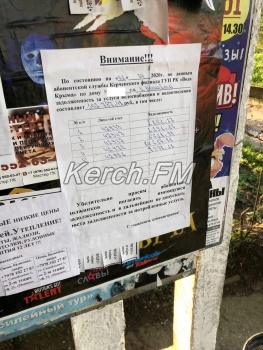 В редакцию Керчь.ФМ обратились керчане, на жилом доме которых водоканал вывесил список должников. Потребителей просят погасить долги за водоснабжение и водоотведение.