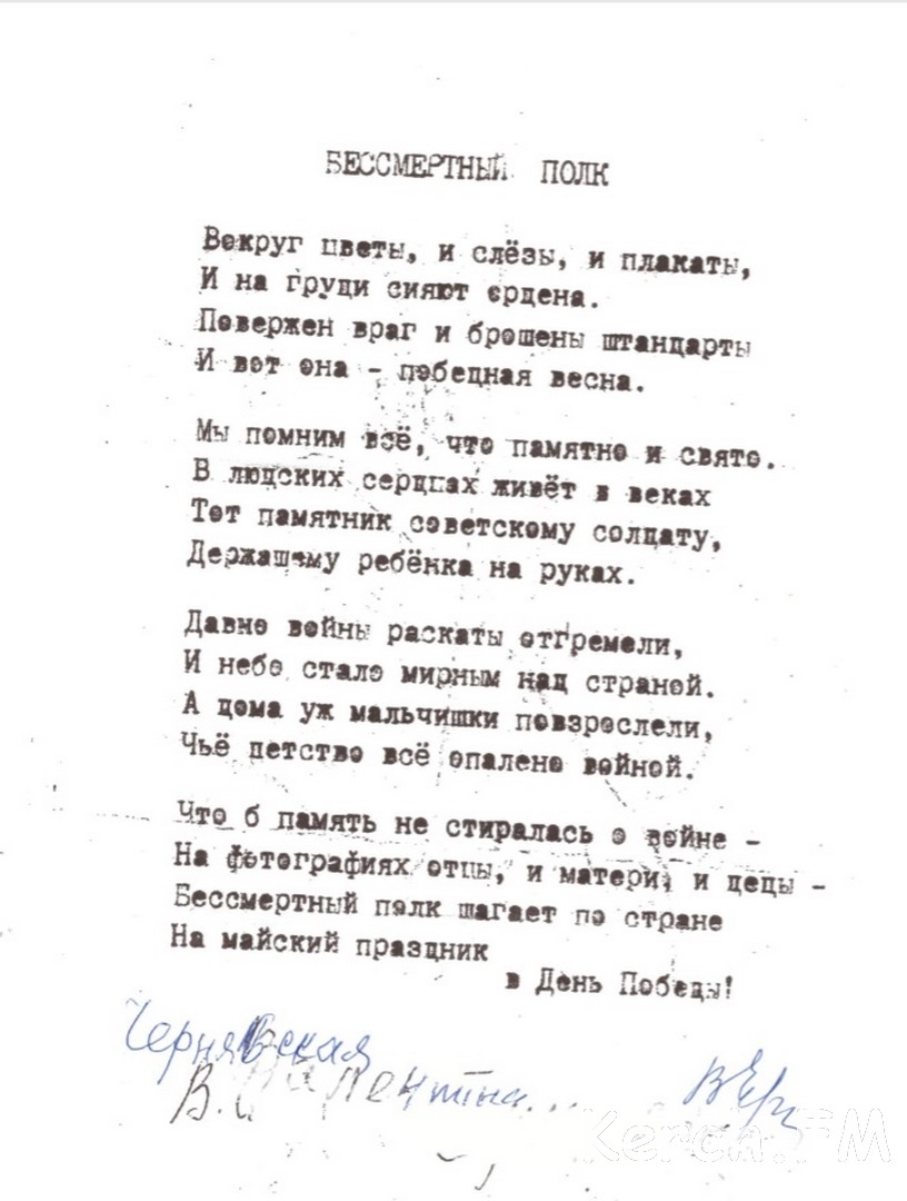 Керчанка написала трогательные стихи о Победе.Стихи Валентины Ивановны Чернявской передали в редакцию читатели сайта Керчь.ФМ.