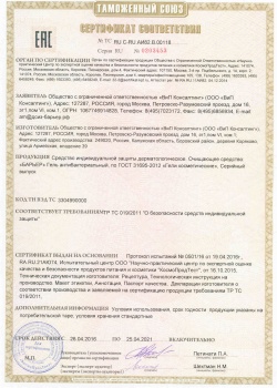 Соответствует требованиям Технического регламента Таможенного союза 019/2011 «О безопасности средств индивидуальной защиты», произведенной в соответствии с ГОСТ 31695-2012
