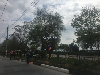 В Керчи, 6 мая, на улице Свердлова люди красят дорожные ограждения. Часть рабочих находятся на дороге, не соблюдая технику безопасности, - сообщает корреспондент Керчь.ФМ.