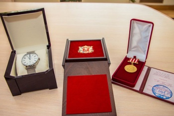 Руководители городского совета и администрации пожелали Виктору Дахину еще много лет работать на благо отрасли образования и родного города, используя свой богатый опыт и знания. Ольга Солодилова вручила Почетный знак «Почетная грамота Керченского городского совета», от администрации Дахина наградили подарочными наручными часами.