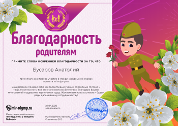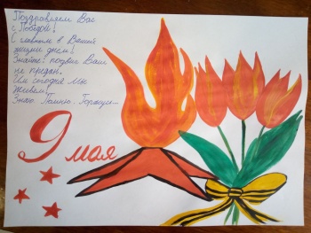 Показательны работы, выполненные воспитанниками под руководством воспитателей Ольги Каракоз и Натальи Князьковой. 3-классница Влада Яковлева выполнила целую открытку с поздравлением с Днем Победы. 6-классники Ваня Чухонцев и Настя Капелюшная поблагодарили ветеранов за мир.