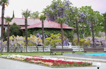 Нынче просто поражают взгляд невероятно пышные каскады глициний, напоминающие пенный цветочный водопад. А наша коллекция сирени примечательна ещё и тем, что с 2011 года Никитский сад - участник федерального проекта «Сирень Победы», цель которого - высадить в каждом из 13 городов-героев аллеи из саженцев отечественных сортов сирени, названия которых связаны с событиями или героями Великой Отечественной войны. Селекционерами НБС созданы такие уникальные сорта, как «Севастопольский вальс» и «Эльтиген», идёт работа над созданием сортов «Брест» и «Героям Сталинграда». В этом году цветение сирени активно продолжается и после Дня Победы, а всего в НБС насчитывается более 100 сортов и форм зарубежной и отечественной селекции, часть из которых уже включена в коллекцию, а часть находится в изучении и на размножении».