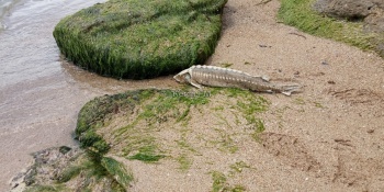 «Обычно часто здесь встречаем дельфинов, но вот мертвый осетр - это впервые. Еще и таких размеров», - написал читатель
