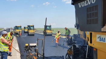Сейчас работы идут за Багеровской транспортной развязкой, дорожники уложили уже более 14 километров третьего слоя на двух полосах левой стороны автодороги. На правой стороне трассы финишный слой покрытия уложен на всем протяжении первого этапа и уже нанесена термопластиковая разметка.