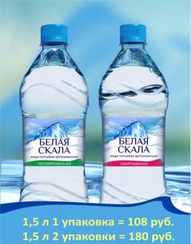 Также с 27 мая по 13 июня включительно действует акция на доставку воды в мелкой таре. Так бутылка воды «Белая скала» 1, 5 газ/негаз при заказе 1 упаковки обойдется Вам в 18 руб., а при заказе двух упаковок стоимость одной бутылки составит 15 руб.