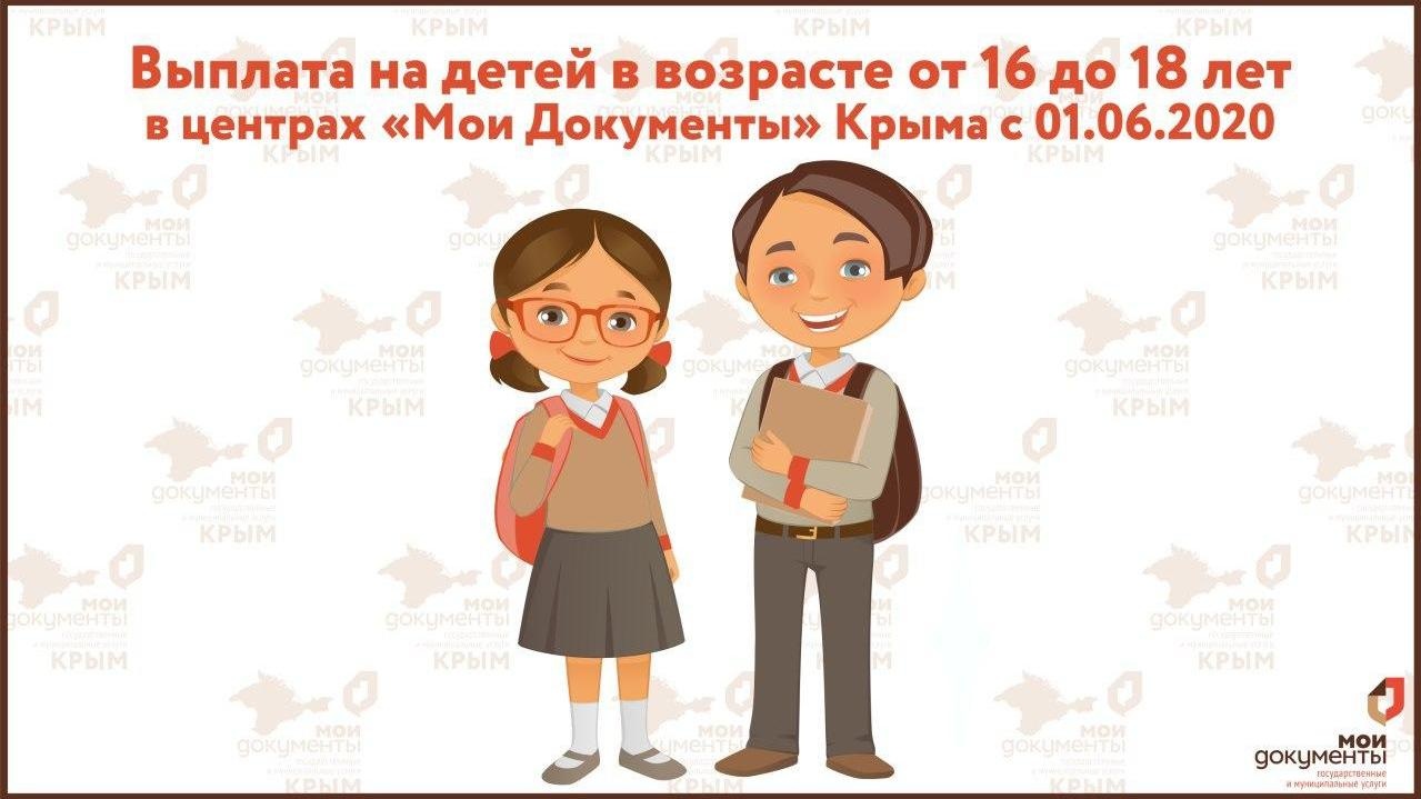 С 1 июня 2020 года в ГБУ РК «МФЦ» начнут принимать заявления на выплату на детей в возрасте от 16 до 18 лет. Об этом сообщает пресс-служба ГБУ РК «МФЦ», - передает Керчь.ФМ.