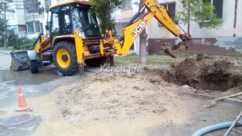 В Керчи 29 мая у школы №23 произошел порыв водовода. Сотрудники водоканала уже приступили к устранению течи. Для этого они разрыли часть тротуара и газона, - передает Керчь.ФМ.