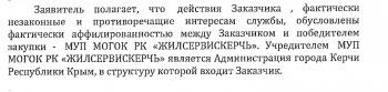 Конфликт между ООО "Блокчейн" и администрацией города начался еще на стадии аукциона. Тогда УЖКХ Керчи объявляли победителем аукциона МУП "Жилсервискерчь", которые предложили большую цену. Для этого заявку Блокчейна УЖКХ отклонило на стадии подведения итогов электронного аукциона.