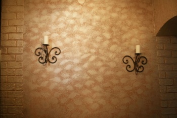 * Краска с частичками. Частички могут быть разные: песок, ракушки, нерастворимые хлопья, блестящие минералы и др. В зависимости от содержащихся частичек в краске, такой эффект вы и получите, это может быть и коралловая стена, морские мотивы либо зыбкость песков, которые перенесут вас к поющим барханам.